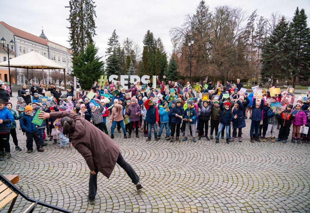 O mulțime de copii și adulți cu cărți în mâini au umplut joi la prânz Piața Centrală din Sfântu Gheorghe, anunță primarul localității într-o postare pe facebook.