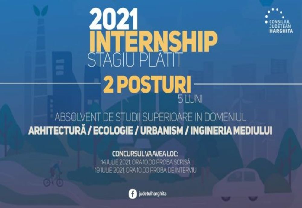 Consiliul Județean Harghita, în calitate de organizație-gazdă, organizează concurs pentru ocuparea a două posturi în cadrul Programului de Internship în baza Legii nr.176/2018 privind internshipul.