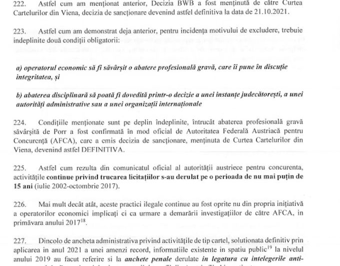 Pe 30 octombrie, FCC a depus o contestație, iar pe 1 noiembrie firma ASTALDI face acuzații extrem de grave și vorbește inclusiv despre prima șpagă, pe care a recunoscut-o dl Canino. Acești domni au contestat și spun: firmele nu puteau fi acceptate pentru că încalcă niște reguli de bază: au dat șpăgi și au trucat licitații. Sunt asociați cu o firmă din Rusia și sunt în pericolul în care încalcă sancțiunile împotriva Rusiei.