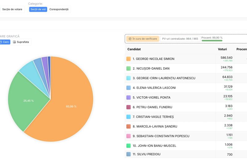 REZULTATE FINALE ALEGERI PREZIDENȚIALE 2025. GEORGE SIMION CÂȘTIGĂ DETAȘAT