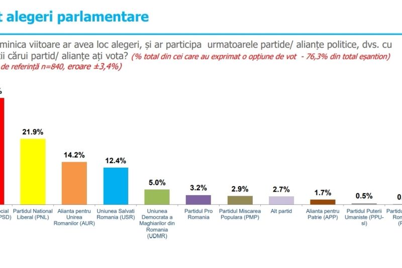 PSD se află în topul preferințelor românilor, într-un sondaj de opinie realizat de INSCOP Research la comanda Partidului Social Democrat, în perioada 15-25 octombrie 2021. Formațiunea condusă de Marcel Ciolacu ar câștiga detașat alegerile, dacă ar avea loc duminica viitoare, cu peste 35%. PNL se situează pe locul al doilea, la mai bine de 10 procente, în timp ce poziția a treia este ocupată de AUR, cu aproape 14% din procente. USR este abia pe 4, cu 12%.